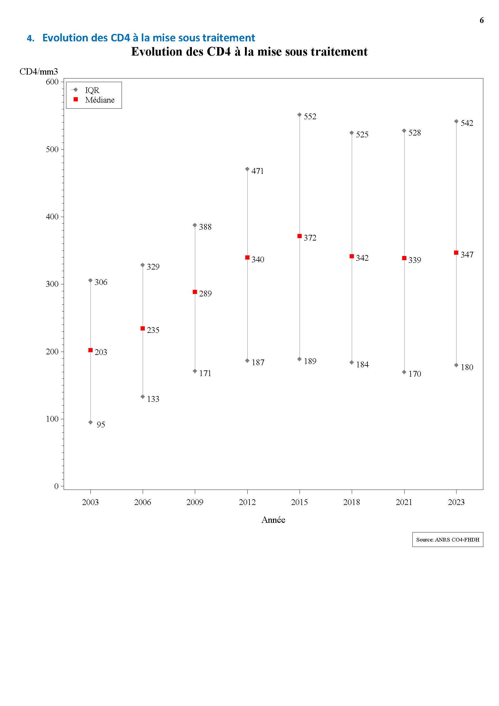 A un niveau donné de CD4, le risque de cancer (Sarcome de Kaposi) a-t-il évolué au cours du temps ?